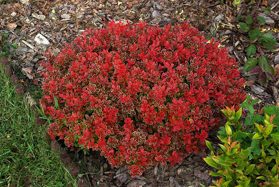 • листва – темно-красные листья с желто-зеленой окантовкой;