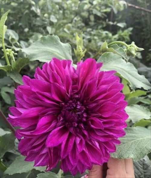 Георгина декоративная картуш - это великолепное растение с яркими лилово-фиолетовыми цветками, идеальными для срезки. Ее стебли достигают высоты до 110 см, а размер цветка составляет 10-12 см. Листья георгины имеют интересную форму, что делает растение еще более привлекательным.
