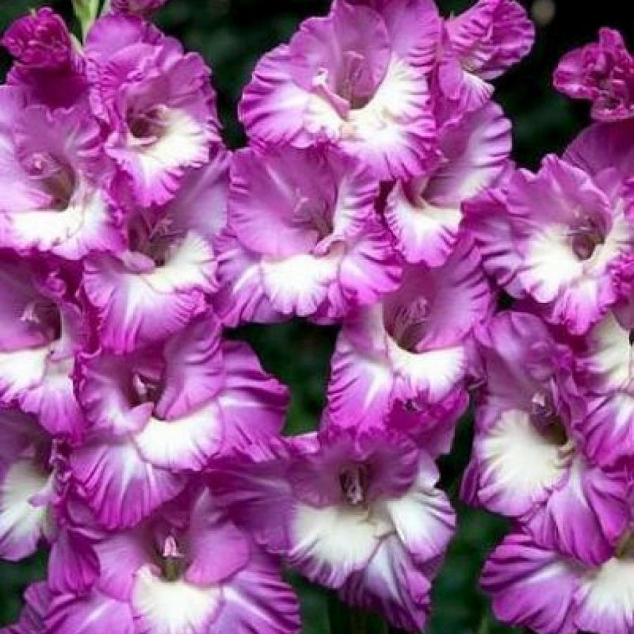 Луковицы Гладиолуса гибридного Шэти Фриззле (Shady Frizzle) — это сокровища для эстета. Крупные цветки с гофрированными лепестками окрашены в пурпурный градиент — от сочного пурпура до нежно-сиреневого цвета, а разбавляет всё это многообразие тонов белые полосы на нижних лепестках. Растение в высоту достигает 120 сантиметров, и привлекает к себе внимание. Оно хорошо смотрится в групповых композициях и монопосадках. Гладиолус Шэти Фриззле подходит для срезки и составления изысканных флористических композиций. Его цветки способны распускаться в вазе с водой, держаться они 10 дней и более.