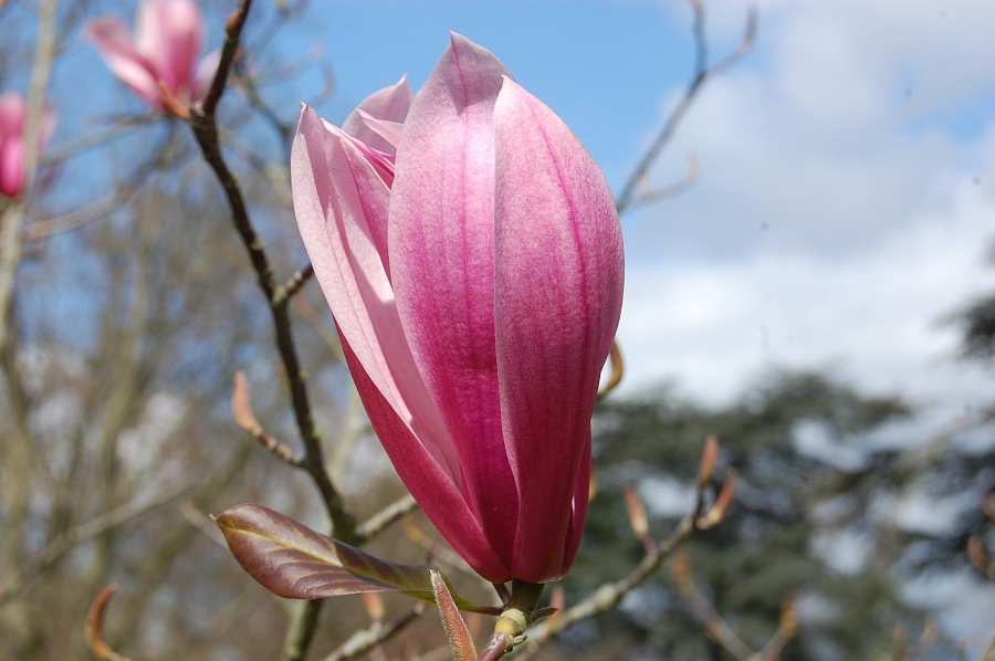 Саженцы Магнолии Спектрум (Spectrum) – растение необычайной красоты. В сезон на раскидистой кроне появляются очень большие цветы. Они источают приятный аромат и радуют глаз своим розовым цветом. Декоративная магнолия имеет коловидную крону, диаметр которой может доходить до трёх метров. Высота варьируется от 5 до 7 метров. Цветы правильной формы по-настоящему большие, 25 сантиметров в диаметре. Оттенок бутонов варьируется от розового до красного. После цветения на ветках образуется плоды, они не съедобные, но выглядят красиво. По форме напоминают шишку. Магнолия украсит сад и привнесёт экзотики.