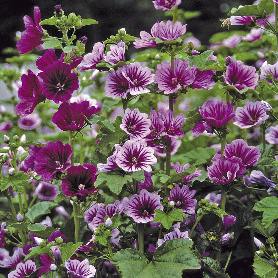 Рассада Мальвы лесной Зебрина (Zebrina) обладает неоспоримым достоинством – ее период цветения продолжается почти все лето, поэтому она будет радовать садоводов очень долгое время. Сочетая в себе неприхотливость и красоту, растение очень легко рассаживается, быстро приживается.Его высота до одного метра. Он имеет крупные, красивые цветки, которые располагаются в пазухах листьев, создавая прекрасные, колосовидные соцветия. Цвет бутонов яркий и бывает в разных цветовых решениях, начиная от светло-розового и заканчивая фиолетовыми оттенками с характерными темными жилками. Его часто используют для лечения в народной медицине. Однако, следует помнить, что Мальву не стоит пересаживать, иначе растение может погибнуть. Место для посадки семян и рассады выбирайте на солнце, исключая возможность даже легких сквозняков. Подойдет рыхлая и удобренная почва, а лучшим периодом посадки является конец июня.