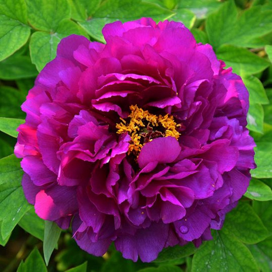Саженцы пиона древовидного Пурпурная ночь (Paeonia Suffruticosa Dan lu yan) поражает своим обильным цветением - на одном кусте можно наблюдать до 50 цветков. Небольшой куст высотой до 1 метра. Листья ярко-зеленые, красивой формы. Густомахровый цветок диаметром около 15 сантиметров, в начале цветения окрашен в красно-рубиновый цвет. Со временем приобретает интенсивный фиолетовый оттенок. Источает насыщенный приятный аромат. Время цветения – первые летние месяцы. Предпочитает достаточно освещенные участки, не требователен к почве, но предпочитает богатые, с дренажом.